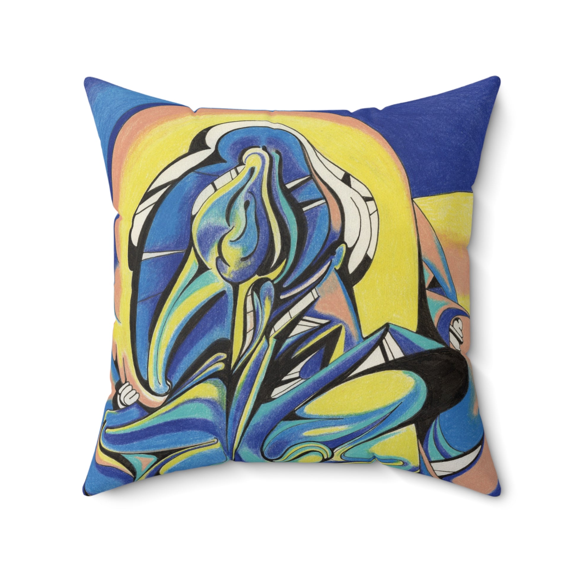 Bring a burst of contemporary art into your living space with this faux suede square pillow. The cover’s lush, soft texture pairs with a vivid double-sided print that blends flowing, abstract shapes in blues, yellows, and muted pastels — like a modern mural distilled into a cozy accent. Tuck it on a sofa, lean it onto a reading chair, or layer it in a bedroom to introduce movement and color without overwhelming the room. The concealed beige zipper keeps the silhouette clean while the slightly oversized recycled-poly insert gives the pillow a full, sculpted look that holds up to everyday use.
